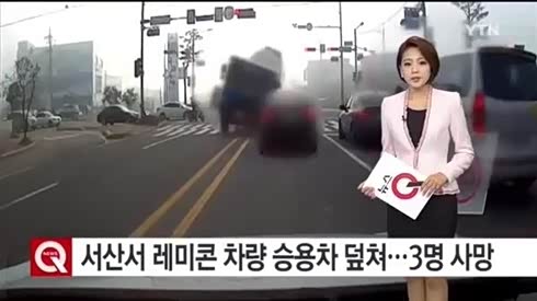 实拍 倒霉货车 遭遇失控轿车惨撞