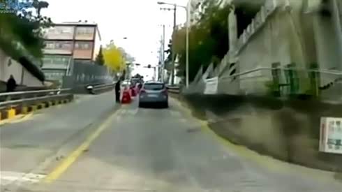 实拍 吊车下坡失控 车友玩命倒车躲避