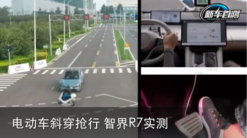 电动车斜穿抢行 智界R7实测