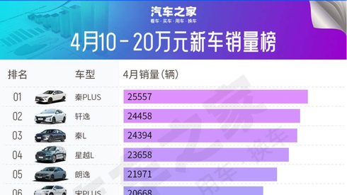 4月车型销量榜 日系一车型冲进前三 海外品牌“打鸡血”大降价