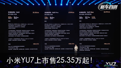 小米YU7上市售价25.35万起!