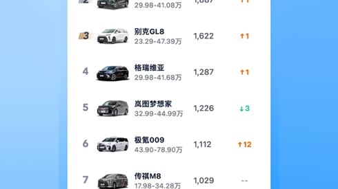 W9周MPV销量榜:高端用户更爱中国品牌 极氪009击败GL8新能源