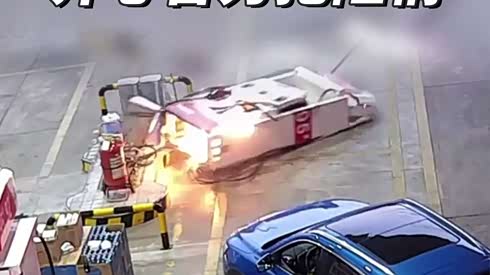 加油机被拉倒引发火灾,众人快速反应仅30秒将火扑灭!