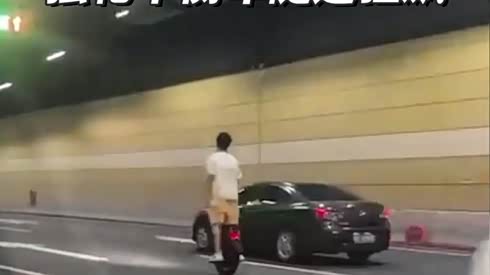 脚踩风火轮?男子脚踏独轮车隧道狂飙,太危险!