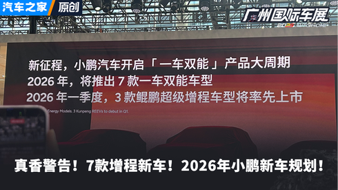 真香警告!7款增程新车! 2026年小鹏新车规划!