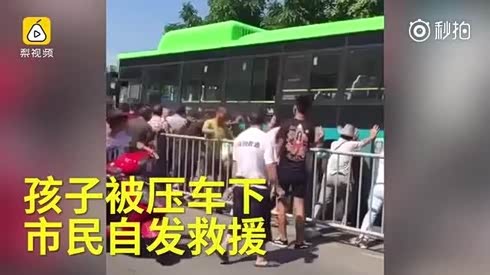 但愿人没事 小孩被压车下群众抬车救人