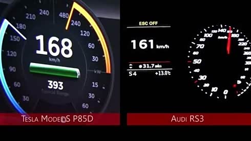 加速对比 奥迪RS 3 vs MODEL S P85D