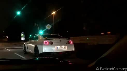 夜晚出来炸街 看日产GT-R公路极速暴走