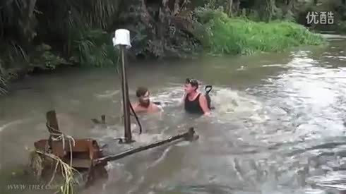 任性的土豪 敞篷Jeep牧马人玩过河 差点挂了