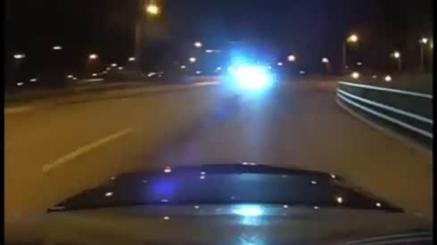 只有看尾灯的份 警车深夜追击挑战者SRT