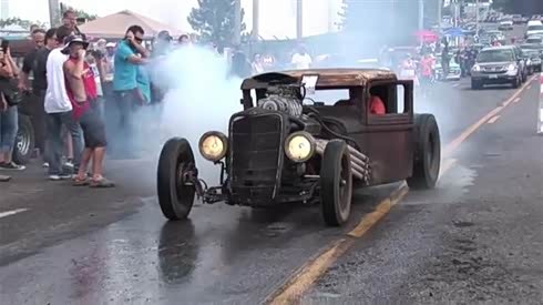 锈迹斑斑 大马力改装车烧胎只剩轮圈