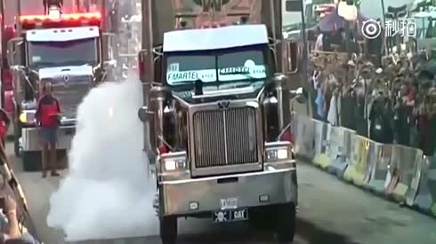 现场浓烟滚滚 爆改大卡车赛道比拼加速