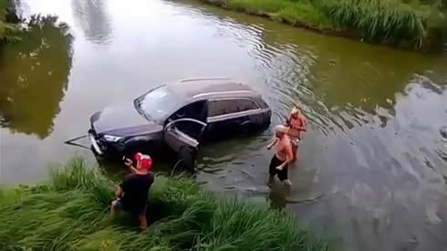 奥迪Q7 放着桥不走 非要过河 杯具了吧
