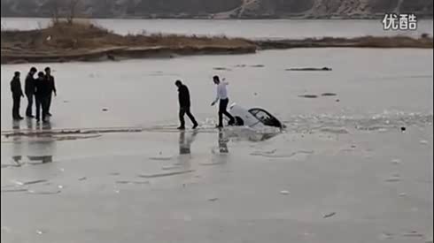 小车漂移玩酷陷冰窟 悲催救援 车被拉散