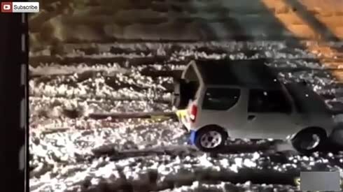 超强悍 斯巴鲁轿车雪地拖行大卡车