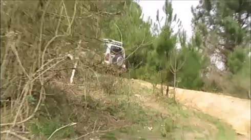 实拍强悍的路虎卫士攀爬45度草坡