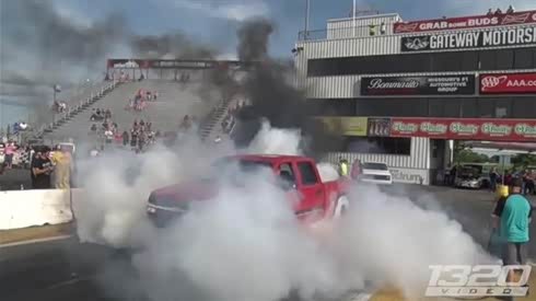 烟雾制造者 实拍美国皮卡烧胎浓烟秀