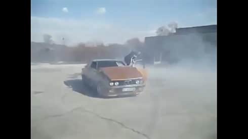 疯了吗 站机盖上驾驶 玩漂移烧胎