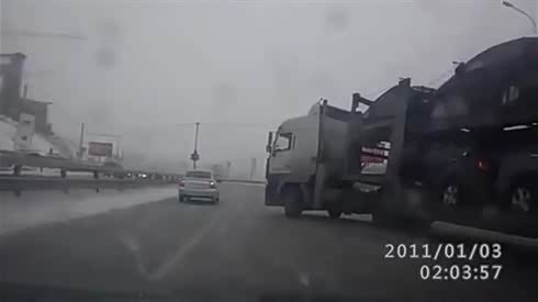 监控实拍:大雪天超速驾驶撞上铲雪车