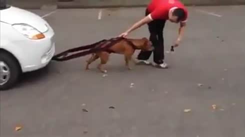 汪星人拼了!看主人怎样训练狗狗拉车