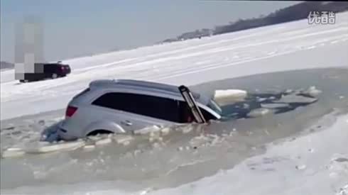 脑残女开奥迪Q7 冰面耍酷 坠入湖中