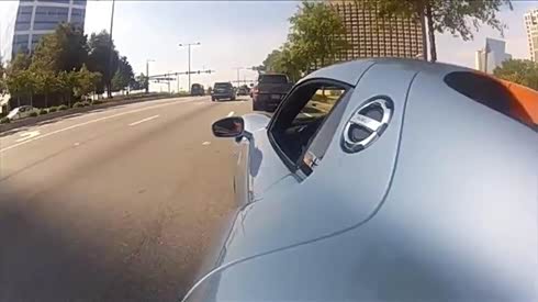 这TM是玩命吧 实拍美男脚踩两辆行驶的轿车玩自拍