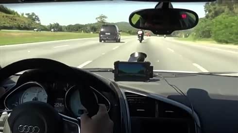 实拍奥迪R8 川崎ZX10R 铃木GSXR1000 高速疯狂飙车!