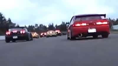 如同赛车游戏 多辆日系跑车赛道缠斗