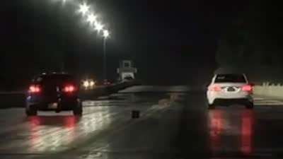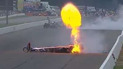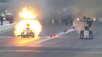 撞车也要一起?直线加速赛车失控起火
