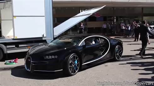 可要小心点!实拍布加迪Chiron卸车过程