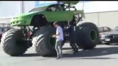 停车场兴风作浪 最大无线遥控大脚车
