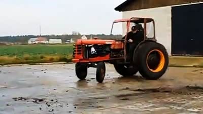疯狂拖拉机!国外牛人驾拖拉机秀漂移