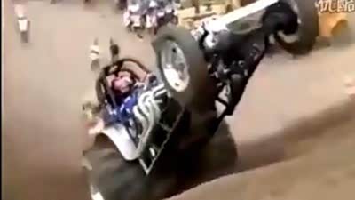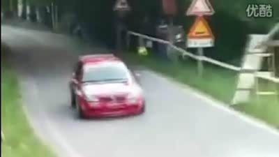不堪重负 拉力赛车一个弯角漂移掉俩轮
