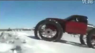 中东车友天生就疯癫 沙漠里俩车玩顶牛