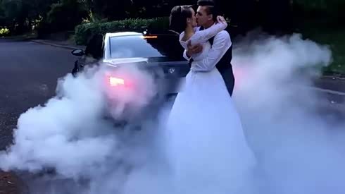 烟雾制造者 宝马M5原地烧胎新人拥吻