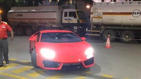 引人注目 Huracan印度加油站被围观
