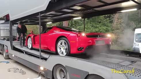 羡慕货车司机 板车搭载两层法拉利超跑