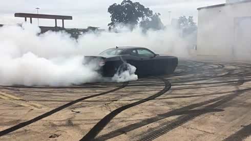 瞬间被烟雾包围 道奇战车转圈玩儿漂移