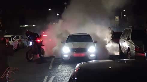 机车也来凑热闹 实拍多车暴力加速/烧胎