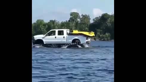 太酷了 皮卡变身“快艇”放肆横行河中