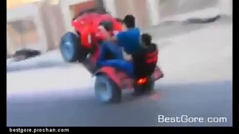 实拍 好基友骑四轮摩托耍酷 没想到杯具了