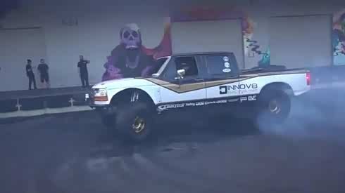 皮卡小院内转圈漂移 发动机声浪刺耳