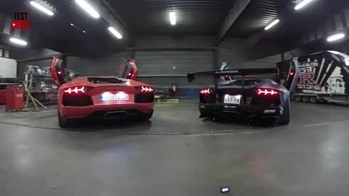 血脉喷张 两辆Aventador车库喷火飙声浪