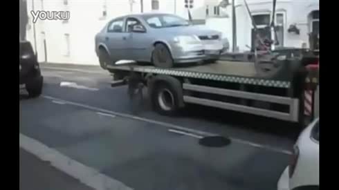 谁敢动我的车!超牛司机直接开车下拖车