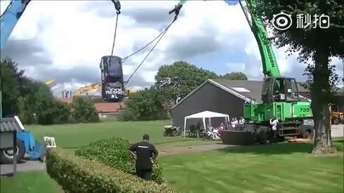 城会玩 老外俩吊车挂小车加速荡秋千