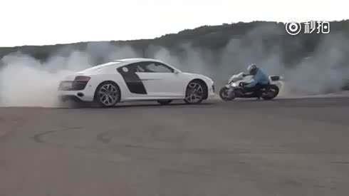 画面太美 奥迪R8 vs 重机摩托对飙甩尾