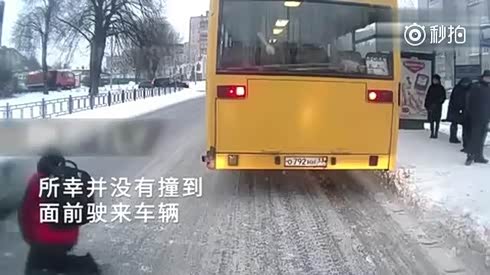 真是命大 男孩过马路摔倒反倒躲过被撞