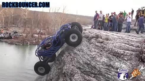 几乎90度角 全地形车奋勇攀爬陡峭岩壁