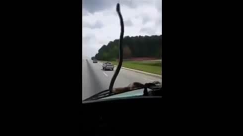 实拍:车头突然窜出一条蛇 耀武扬威...