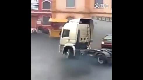 绝对老司机 重型卡车表演精彩漂移秀